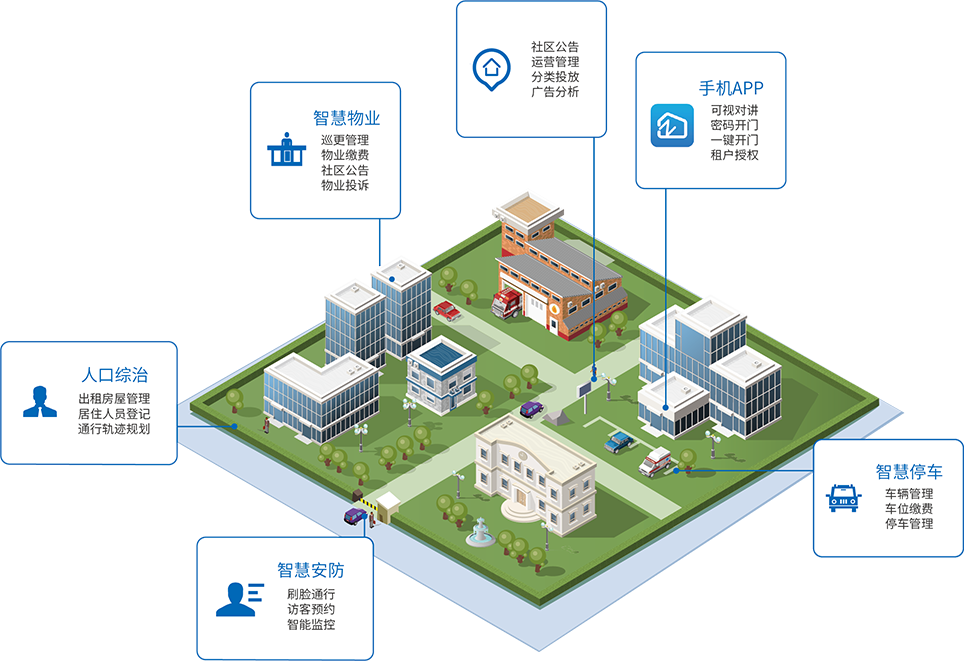 依托智能设备,结合物业、养老、政务、医疗等,实现社区业务一体化。利用AI+技术、大数据、云计算、物联网、互联网技术实现社区整体解决方案,打造完善的智慧社区管理和生活服务平台。以一房一社区为核心,建立智慧平台生态圈,推动大时代科技高速发展下的智慧城市建设